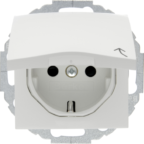 Berker- Priza SCHUKO 16A, 250V (mecanism), cu capac, variabila 45°, protectie copii, alb polar lucios S.1/B.3/B.7