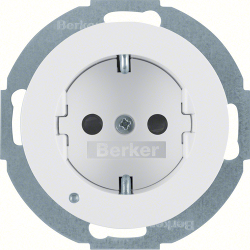 Berker- Priza SCHUKO 16A, 250V (mecanism), protectie copii, indicator LED, senzor crepuscular, alb polar lucios, R.1/R.3/R.8/R.classic
