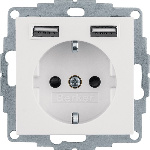 Priză SCHUKO 16A, priză de încărcare (mecanism) cu două porturi USB de tip A