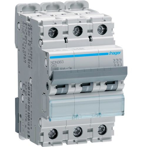Hager MCB- Disjunctor 3P, 63A, 10kA, curba D, 3M, Bi-Connect