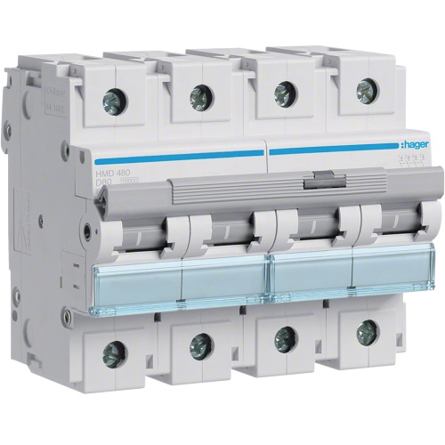 Hager MCB- Disjunctor 4P, 80A, 15kA, curba D, 6M