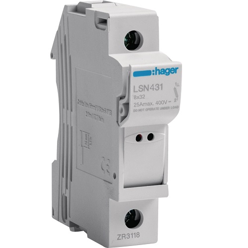 Hager- Separator Port fuzibil 1P, 25A, AC, 8x32mm, 1M, cu indicator luminos