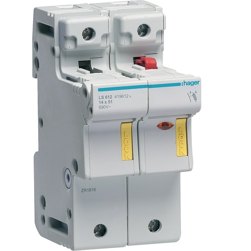 Hager- Separator Port fuzibil 2P (1P+N), 50A, AC, 14x51mm, 3M