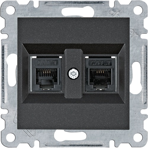 Priză dublă telefon RJ11 (mecanism cu tastă frontală), negru.