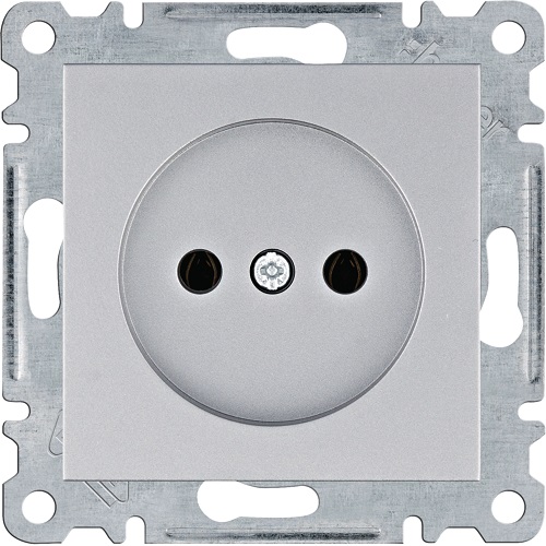 Priză  simplă (mecanism cu tastă frontală), argintiu.