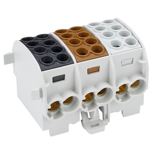 Clemă derivație 35mm², izolată, negru/maro/gri.
