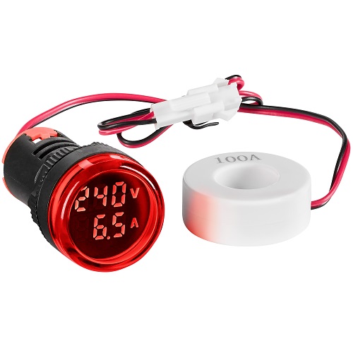 Voltampermetru Digital 0-100A/50-500V AC, rotund, roșu