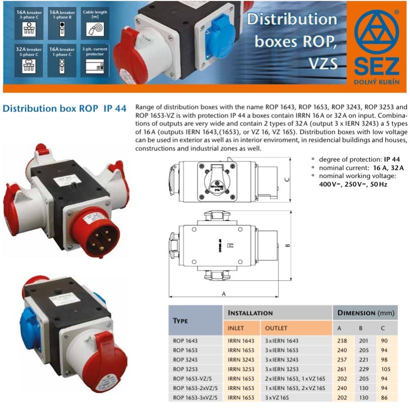 Ieșire: 3 x prize industriale 32A, 5P (3P+N+PE)